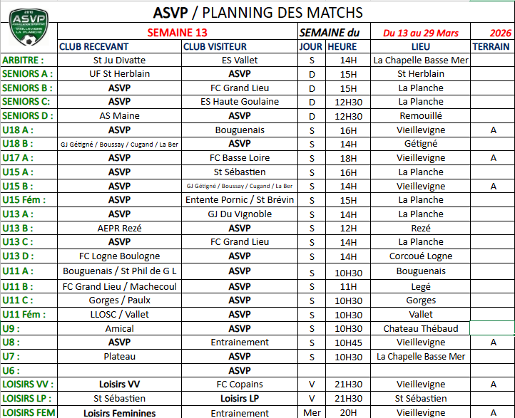 Planning semaine 13 du 23 au 29 Mars 2025